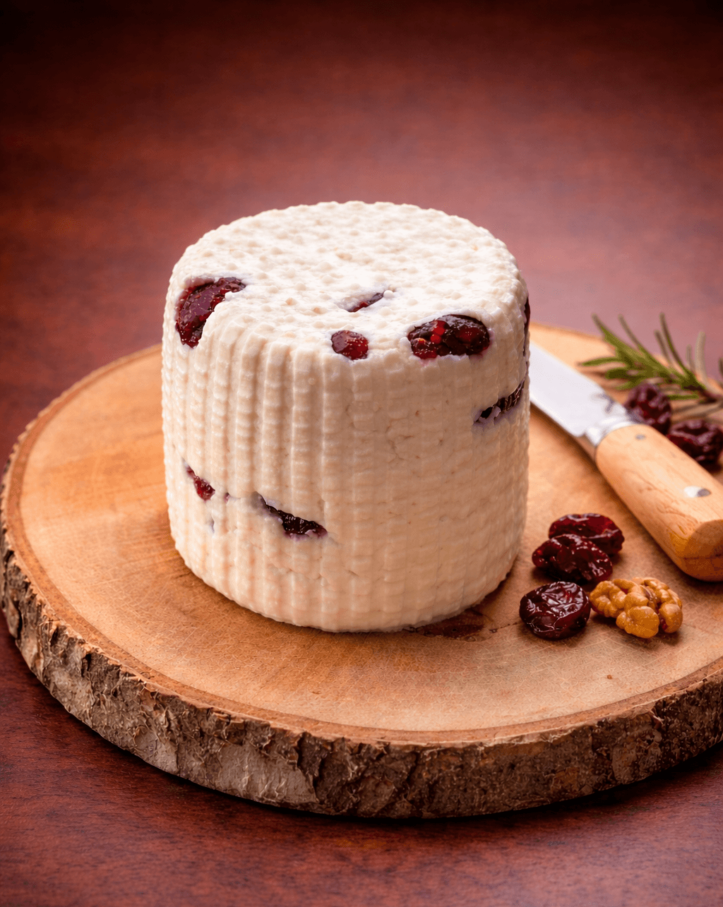 Świeży ser górski z dodatkiem żurawiny. Delikatny smak z lekko słodkim akcentem. Idealny na przekąskę lub do kanapek.